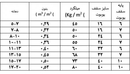 ۸- مقاومت بتن مورد استفاده در این دالها در طراحی سازه تعیین میگردد . روانی بتن (اسلامپ) مورد استفاده باید در حدود ۱۱ الی ۱۳ سانتیمتر بوده تا بتن بهراحتی در زیر قالبها حرکت کند .